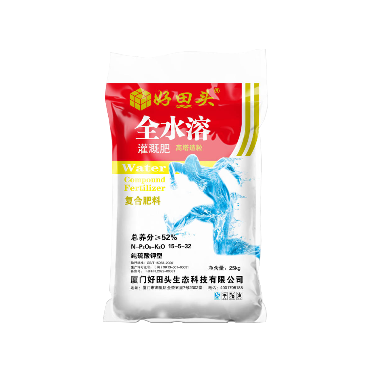 15-5-32 high potassium nitrogen type, suitable for use during crop swelling period. It has the effects of expanding fruit weight, beautifying fruit, coloring and sweetening, early ripening, improving quality, and increasing yield.